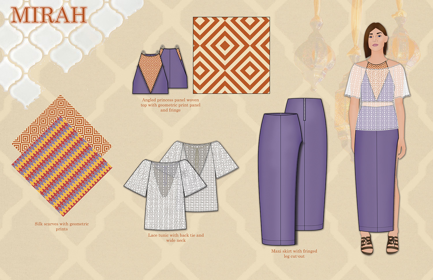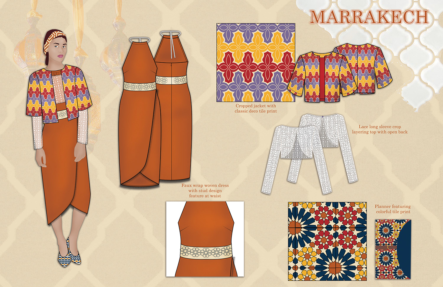A collection for women inspired by the exotic style of Morocco, and the vibrant colors and prints found in their markets